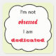 Um adesivo engraçado para você declarar "Eu não sou obcecado sou dedicado". Ou você pode mudar o texto de "obcecado" e "dedicado" para suas próprias ideias. Texto preto e vermelho.