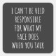 Adesivo Quadrado não posso ser responsabilizado pelo que meu rosto