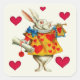 Um adesivo quadrado para combinar o nosso convite "Não Atrasem!" com uma imagem vintage Alice no País das Maravilhas do Coelho Branco na regalia do cheio e cinco corações vermelhos no creme. Veja o convite correspondente, envelope, confetti, etiqueta de favor quadrada, ímã de salvamento quadrado e papel de empacotamento. Veja toda a coleção Wonderland Sticker nos CONVITES | Seção Stickers & Labels