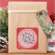 Crie autocolantes para etiquetar suas mercadorias caseiras de Natal, biscoitos, doces, doces, doces, favoritos para festas e mais com cola azul e bagas no fundo vermelho falso brilhante e sua mensagem em caracteres quicos.