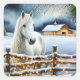 Adesivo Quadrado Natal da Fazenda bonito de Cavalo Branco