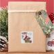Este adesivo de Feriado apresenta um adorável cão Cairn Terrier vestindo um chapéu de Papai Noel vermelho e branco, e sentado em uma cesta de vime. Atrás do cão está um travesseiro de xadrez de búfalo vermelho e preto, e um pacote de presentes correspondente fica ao lado da cesta. A tipografia da xadrez de Buffalo é emparelhada com uma escrita preta para dizer "Feliz Natal", com "Feliz ano novo" abaixo disso. Sua assinatura personalizada está em dois campos de texto fáceis de alterar.