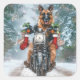 Adesivo Quadrado Natal de Motocicleta german shepherd