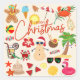 Um design alegre e divertido perfeito para um Natal divertido numa praia arenosa.