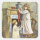 Ilustração vintage de imagem de Natal Vitoriano com irmãos, um menino e uma menina trabalhando juntos. O menino e a menina bons estão pendurando meias na lareira na véspera de Natal esperando pelo Papai Noel. A Noite Antes do Natal de William Roger Snow, 1918.