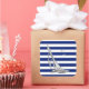 Um cromo prateado como design de barco a vela regata em um decor de listras azuis marinho. Um presente náutico moderno. Use o link "Perguntar a este Designer" para entrar em contato conosco com suas solicitações especiais de design ou para obter assistência com qualquer das suas necessidades de personalização.