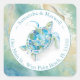 Adicione alegria tropical ao seu casamento de destino, chá de panela, ou correio diário com meu adesivo de endereço chic da ilha. Estes autocolantes quadrados apresentam minha tartaruga marinha de cor d'água original cercada por ondas do oceano litorâneo em tons de azul, turquesa e verde. Personalize com os nomes do casal e o endereço de correspondência. Edite as palavras para ler Obrigado e use como adesivos de favor. Para ver o papel de carta correspondente visite www.zazzle.com/dotellabelle