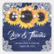 Adesivo Quadrado Navy Blue Wood Lace Sunflower Wedding Thank You