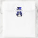 Um bonitinho, bonitinho e bonitinho, com ele vestido de chapéu azul de veludo e colete correspondente, cercado por estrelas azuis no Natal.