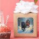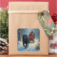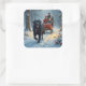 Adesivo Quadrado Newfoundland Dog Snowy Sleigh Ride Christmas