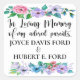 Este é um modelo, então você muda os nomes. Eu tenho versões muito populares também para uma preferencialmente de nome que para o plural dos pais; no entanto, eu estou criando essas versões para mim mesmo. Por favor, veja minhas coletas. Eu criei um para mim mesma, pois preciso começar a passar pelos livros e roupas dos meus pais para doar. Muito obrigado por ter vindo a mim, e espero que o encontre bem. https://www.zazzle.com/store/sharonrhea
