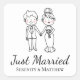 Adesivo Quadrado Noiva Desenho Animado Noivo Preto Branco Recém-Cas