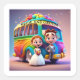 ADESIVO QUADRADO NOIVA E NOIVO E O ÔNIBUS DO ARCO-ÍRIS