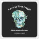 Tema de Chá de Noiva Gótico de Halloween - Caveira Floral Amor à Primeira Medo Chá de Noiva Gótico de Halloween Adesivo Quadrado.