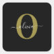 Adesivo Quadrado Nome com Letra Inicial Personalizada Preto Branco