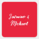 Adesivo Quadrado Nome da Caligrafia Vermelha Mínima Moderna e Bonit