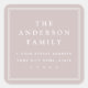 Etiquetas de endereço de retorno de cor elegantes, claras ou rosa ou personalizadas com o nome da sua família em uma fonte serif elegante e o endereço de retorno abaixo cercado por uma borda dupla.