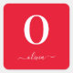 Adesivo Quadrado Nome de roteiro de monograma personalizado vermelh