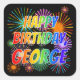 Adesivo Quadrado Nome "GEORGE", Diversão "FELIZ ANIVERSÁRIO"