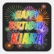 Adesivo Quadrado Nome "KIARA", Diversão "FELIZ ANIVERSÁRIO"