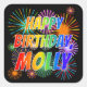 Adesivo Quadrado Nome "MOLLY", Diversão "FELIZ ANIVERSÁRIO"