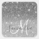 Adesivo Quadrado Nome Personalizado da Glitter da Cinza Moderna