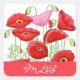 Adesivo Quadrado Nome Personalizado de Arte de Poppies Rosa Vermelh