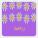 Adesivo Quadrado Nome personalizado flores azuis em roxo