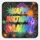 Esta animada e empolgante design de autocolante com tema de aniversário tem a mensagem "FELIZ ANIVERSÁRIO, SAMUEL", tendo um espectro colorido do arco-íris inspirado em um padrão de gradação, e um divertido fogo de artifício celebratório inspirado em um padrão de fundo. Tímulos coloridos como este podem ser dados como presente de aniversário, ou usados enquanto embrulham presentes/presentes, ou usados como decoração de festas de aniversário quando se celebra o aniversário de alguém chamado Samuel. [~Z0000457]