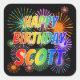 Adesivo Quadrado Nome "SCOTT", Diversão "FELIZ ANIVERSÁRIO"