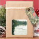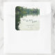 Para a sua celebração de casamento ao lado do lago ou do rio, esta rústica "Nossa aventura começa" adesivo de convite para casamento, criada da minha própria fotografia pessoal de caiaque e com um sutil efeito de aquarela digital e elementos tipográficos, mostra uma bela cena natural sob um céu coberto com água levemente ripada refletindo verduras distantes, árvores de cedro e estruturas rochosas - de katz_d_zynes