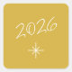 Um simples adesivo quadrado com floco de neve em 2026, com uma inscrição branca e personalizável design sobre fundo de ouro. Uma elegante adição aos seus cartões de natal e presentes no final do ano.