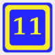 Adesivo Quadrado número 11, fundo azul, quadro amarelo