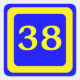 Adesivo Quadrado número 38, fundo azul, quadro amarelo