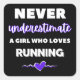 Adesivo Quadrado Nunca subestime uma garota que ama correr.
