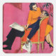 Artista:Morgan Kane | Um homem está sentado numa cadeira vermelha brilhante lendo o jornal, e uma mulher está sentada no braço