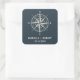 Projetado para combinar com nossos convites de casamento e acessórios do The Blue Compass, este adesivo náutico de natação em chic apresenta uma ilustração de bússola desenhada manualmente em azul marinho. Perfeito para praia, verão ou casamentos náuticos. Este design faz parte de uma coleção, visite nossa loja para obter itens correspondentes. Para obter uma solicitação personalizada, entre em contato conosco em citronelladesign@gmail.com