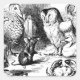 Vintage Alice no País das Maravilhas, mostrando o Rato de Porta cercado por outros animais contando uma história.