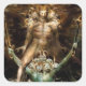 Pintura de um monstro marinho verde de sete cabeças segurando uma espada e uma ascensão de cetro do mar sob um dragão de sete cabeças com asas de excelente. Pintura fantástica de William Blake, intitulada "O Dragão Vermelho Excelente e a Besta do Mar". 1805