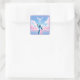 Silhuetas femininas estão sob um céu de algodão doce com um símbolo transgênero branco no céu como o sinal de morcego, ele tem um coração no meio.