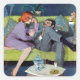 Artista: Lynn Buckham | Uma mulher de vestido roxo e um homem de fato sentado num sofá verde.