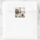 Um caráter caprichoso com olhos grandes e cabelos pontiagudos ocupa o quadrante superior esquerdo, enquanto flores vibrantes enchem a parte inferior direita. A trabalho de arte é dividida em quatro quadrantes, com um efeito de papel rasgado separando cada seção e um fundo texturizado e envelhecido por todo o lado.