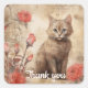 Um gatinho pelado fofo com olhos azuis em greve está sentado ao lado de duas rosas cor-de-rosa contra um pano de fundo com script de safena e manchas de tinta. Os tons de sépia dão uma sensação quentinha à composição, que combina florais e um sujeito animal fofo.