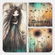 Um personagem sorridente com olhos grandes e cabelos compridos com flores fica ao lado de duas imagens quadradas de flores estilizadas em um campo. A paleta colorida é quente com sépia, turquesa e laranja queimada dominando a cena, evocando uma sensação nostálgica ou de safena.