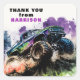 Adesivo Quadrado Obrigado Aniversário Monstro Caminhão de Choque
