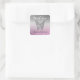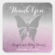 Adesivo de agradecimento de chã de bebê encantador, elegante, caprichoso e sonhador, com fundo rosa roxo borboleta e brilho prateado.