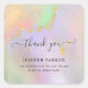 Adesivo Quadrado Obrigado em letra cursiva holográfica dourada aqua