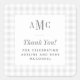 O toque final perfeito para um chá de bebê ou lembrancinha de festa de jardim sulista na primavera, este adesivo com padrão xadrez cinza claro e branco tem um monograma de três letras fácil de editar e texto de mensagem personalizada para dizer aos seus convidados o quanto você os aprecia.