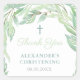 Agradeço a vocês os adesivos por qualquer evento, mas particularmente adequado para um Batismo/Christening. A design apresenta uma moldura de primavera de aquarela em tons harmoniosos de verde. Se você quiser mover ou excluir a cruz, isso poderá ser facilmente alcançado ao inserir a ferramenta design (abaixo das caixas de personalização de texto, clique para "personalizar ainda mais".