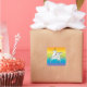 Um adesivo de unicórnio coloridamente mágico com listras arco-íris no quadrado de fundo Obrigado adesivo. Excelente para selar envelopes e favorecer bolsas para qualquer amante de alicórn, unicórnio ou pegacorn.